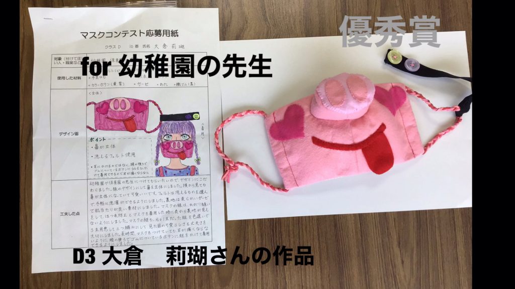 マスクコンテストの結果発表 投稿公開日:2020 年 6 月 9 日 投稿カテゴリー:お知らせ / トピック / 在校生へのお知らせ 興陽高校マスクコンテストに135作品もの作品を応募がありました。6月9日に、5名の審査員により厳正な審査を行いました。どの作品もアイデアあり、デザイン性ありで甲乙つけがたいところでしたが、審査の結果、最優秀賞作品1点、優秀賞5点を選びました。 なお、賞品を受け取る際には受賞作品を身につけてくださいますようお願いします。全員で記念写真を撮って公式Instagramにアップしたいと思います。どうぞよろしくお願いします。