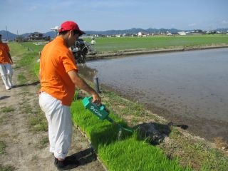 里海米の水田でスマート農業体験 令和4年7月2日(土)9:00~11:30 講師は農業科2年生作物類型の生徒です。ファミリー稲作体験会で直進アシスト田植え機の試乗体験をしてもらいました。 投稿公開日:2022 年 7 月 22 日 投稿カテゴリー:トピック 田植え前に苗に薬を散布しました。 田植機のチェックを先生にしていただきました。 直進アシスト田植え機にいよいよ乗り込みます。親子で乗ることにしました。 まずは生徒が運転します。子供たちも興味津々です。 海米の岸本会長が来校され、田植えの指導や里海米の消費についていろいろとお話をして下さいました。一緒にみんなで写真を撮りました。
