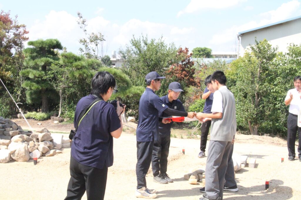 技能五輪国際大会銀賞おめでとう!興陽高校で報告会 投稿公開日:2024 年 10 月 4 日 投稿カテゴリー:トピック / 造園デザイン科 9月10日から15日にかけてフランスで開催された技能五輪国際大会造園競技に、日本代表として倉敷市のイカサ緑地(株)の田子さんと福元さんが出場され、みごと世界2位の銀賞を獲得されました。 田子選手と福元選手は大会にむけて4ヶ月間、本校で練習を重ねてきました。夏休み中には庭を造る工程やできあがった作品を見せていただき、その努力と作り上げる庭の美しさに感動し、私たちは実習だけでなく部活動や進路に向けた活動を頑張ることができました。その感謝と応援の気持ちをこめて、国旗に寄せ書きをして、2学期の始業式後、フランスに旅立つ両選手にお渡ししていました。 9月15日の閉会式後、世界2位の一報が入り、造園デザイン科では身近な人の入賞に驚き、喜び、私たちの激励の国旗を肩にかけてくれている姿に感動で胸がいっぱいになりました。 9月30日に、技能五輪国際大会の報告会を興陽高校で行いました。高校時代からの造園との関わり方や技能五輪への向き合い方、日々の練習への心持ちなどを話してくれて、お二人やそこに関わる方々の気持ちを知れば知るほど、今回の銀賞が本当にうれしく、興陽高校で練習してくれてありがとうという気持ちが大きくなりました。高い志を持って諦めず努力すること、好きなことをみつけて行動に移すこと、どの言葉も心に残るものばかりでした。その中で、お二人の「興陽高校で練習をしていて、毎日、暑い中でも実習をする生徒の皆さんを見て、自分たちも頑張ろうと思えた。興陽高校で練習できて良かった。」という言葉を聞いて、私たちの活動がお二人を勇気づけていたことを知りました。言葉を交わさなくてもお互いの姿にお互いが勇気づけられる、成長できる、このような貴重な経験をさせてくれたこのご縁に感謝です!田子雅也さん、福元健悟さん、銀賞おめでとうございます!!