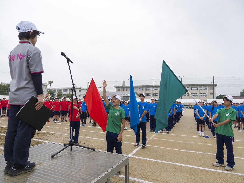 体育祭 『 笑顔マシマシ! 青春濃いめ! 団結かため! 』 投稿公開日:2025 年 10 月 3 日 投稿カテゴリー:トピック / 体育祭・文化祭・ぼっけぇ祭 / 生徒会 9月26日(金)、体育祭が行われました。前日の雨により、グラウンドの状態が心配されましたが、興陽高校のグラウンドは水はけが良く、また早朝からのグラウンド整備によって無事に実施することができました。テーマである『 笑顔マシマシ! 青春濃いめ! 団結かため! 』のもと、笑顔が溢れ、クラスや学年をはじめとする“興陽”の団結力が高まった体育祭となりました。ブロック優勝は「緑ブロック」、クラス優勝は「M3」となり、体育祭は幕を閉じました。この団結力を、文化祭でも魅せてくれるはずです!