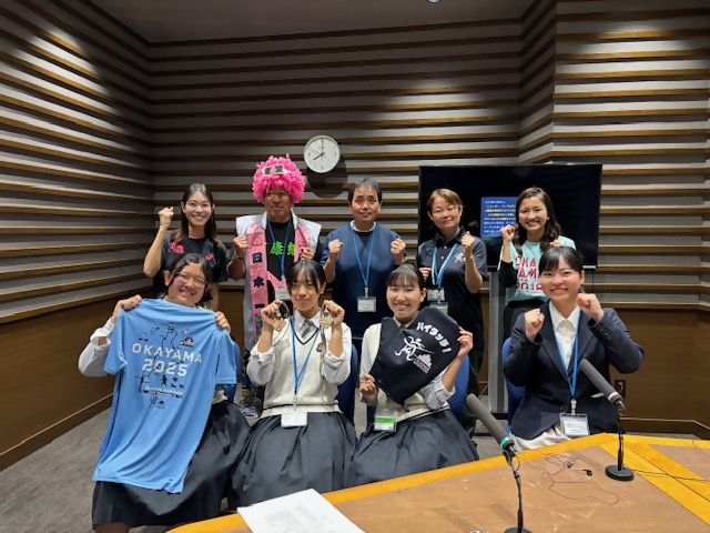 中四国ライブネット岡山発「もっと、好きになる おかやまマラソン2025」に生出演! 投稿公開日:2025 年 10 月 22 日 投稿カテゴリー:トピック / 吹奏楽部 / 和太鼓部 / ダンス部 吹奏楽部・和太鼓部・ダンス部の代表者が、ラジオに生出演しました!おかやまマラソンに関わる方たちと楽しくラジオ収録ができました。当日応援がんばります!