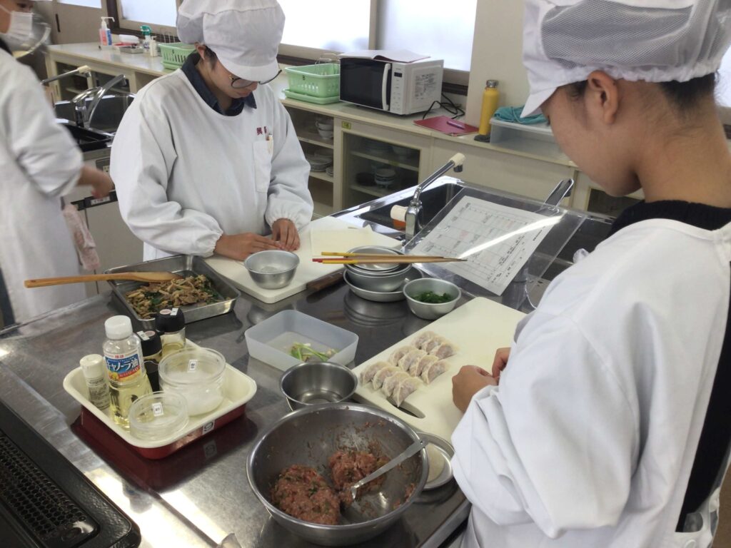 家政科3年 食物科学類型「点心」を作りました! 投稿公開日:2025 年 11 月 4 日 投稿カテゴリー:トピック / 家政科 / 授業・実習風景 / 校内風景 デニムの日に調理実習がありました。今回の調理実習は、餃子、春巻などの点心が中心でした。デニムを着ているからか、いつも以上にハイテンション!?しかし調理になると、さすが3年生、盛りだくさんの献立でしたが、手際よく美味しく作り上げました!