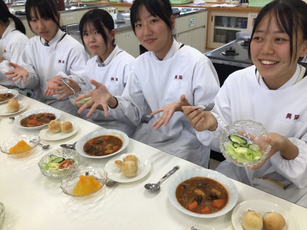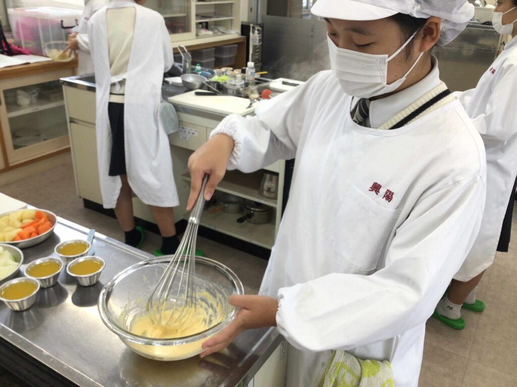 家政科2年 「洋風献立」たくさん学ぶことがありました! 投稿公開日:2025 年 11 月 4 日 投稿カテゴリー:トピック / 家政科 今回の実習では、手ごねパンに挑戦!他にもブラウンルウを作って、ビーフシチューにしたり、マヨネーズを作ったりと、普段は市販品にお世話になっているものも自分たちで手作りし、とても勉強になりました。特にマヨネーズは、材料を混ぜ合わせるタイミングや分量によって、劇的に仕上がりが違います。残念ながら失敗してしまった班もありましたが、失敗したからこそ分かったことがたくさんあったはず!次の実習に活かしましょう。今日の献立も美味しくいただきました。