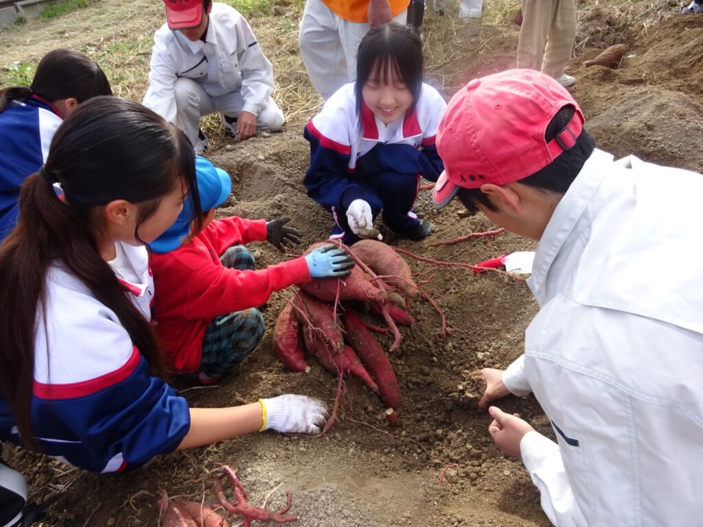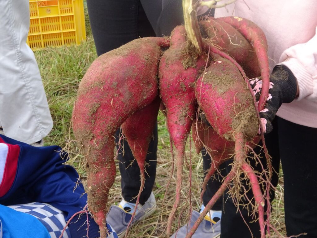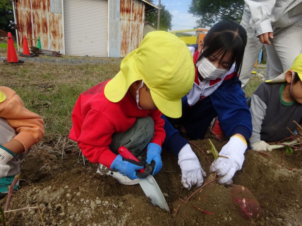 六区保育園のみんなと一緒にさつまいも掘り! 投稿公開日:2025 年 11 月 10 日 投稿カテゴリー:トピック / 家政科 / 被服デザイン科 / 授業・実習風景 / 校内風景 今日は、六区保育園のみんながさつまいも掘りに来てくれました。五月に苗を植えてから、今日のこの日を、興陽高校のお兄さん、お姉さん達はとても楽しみにしていました。園児のみんなも、軍手をはめ、スコップを持ち、準備万端!お姉さんの「頑張ってさつまいもを収穫していきましょう!」の声で、芋掘り開始!土からのぞいたさつまいもに「ここにある!」と大興奮。大きなさつまいもを掘り出すのは大変だったけど、みんなでたくさん収穫できました。