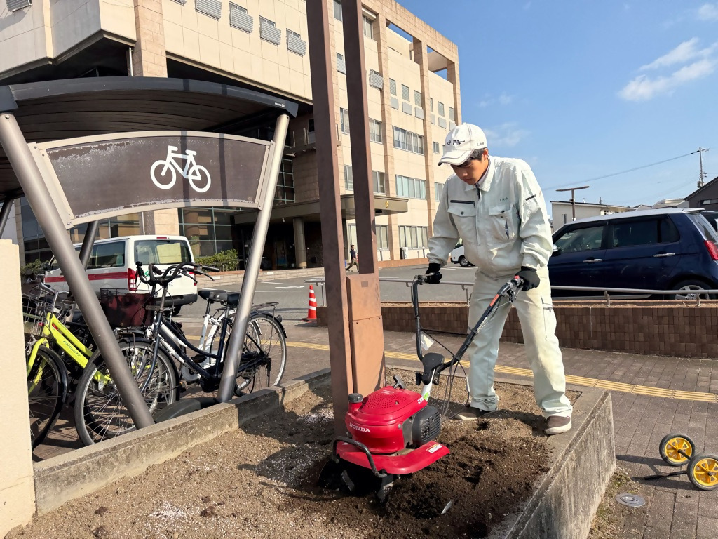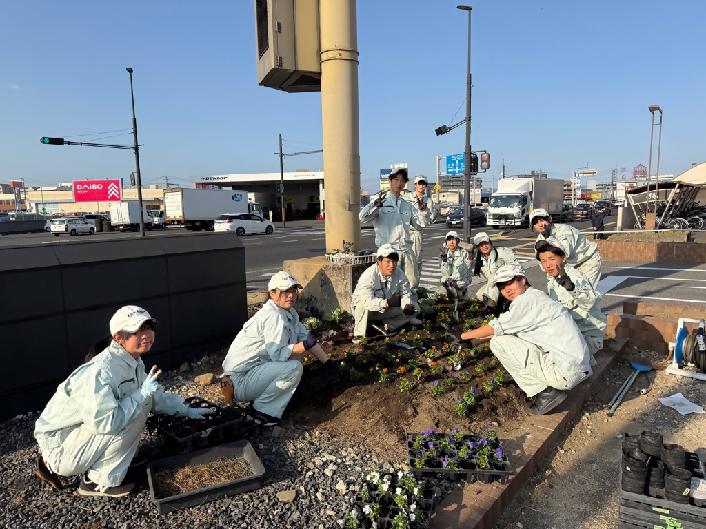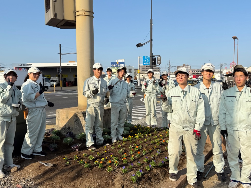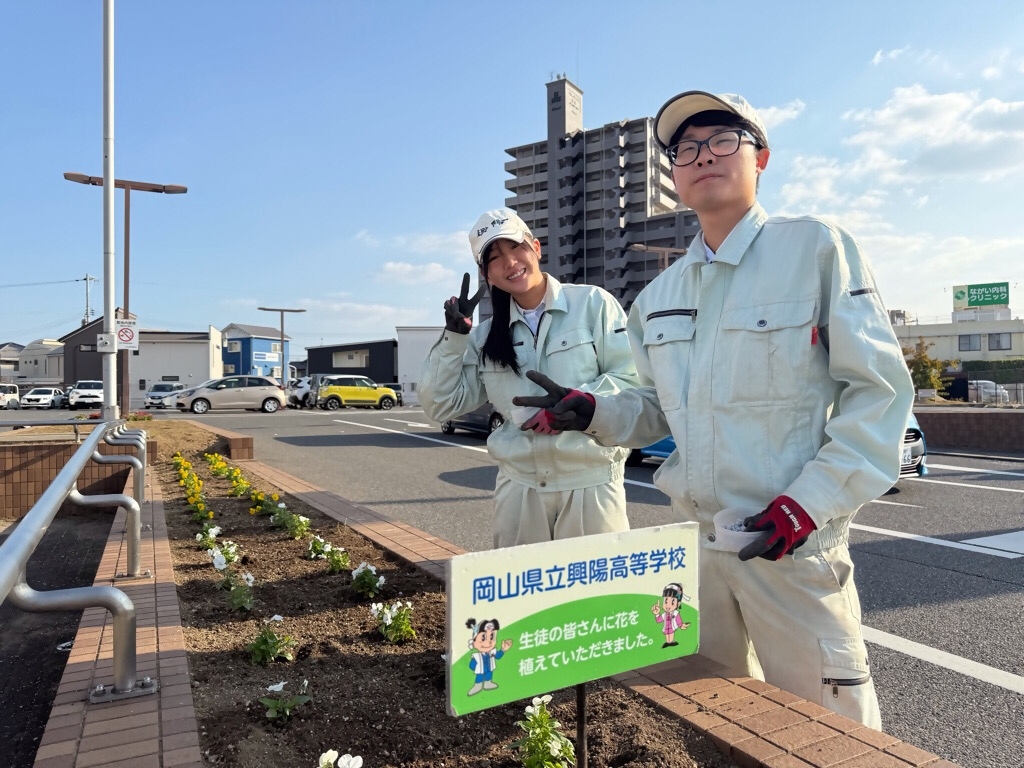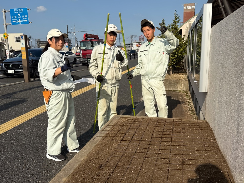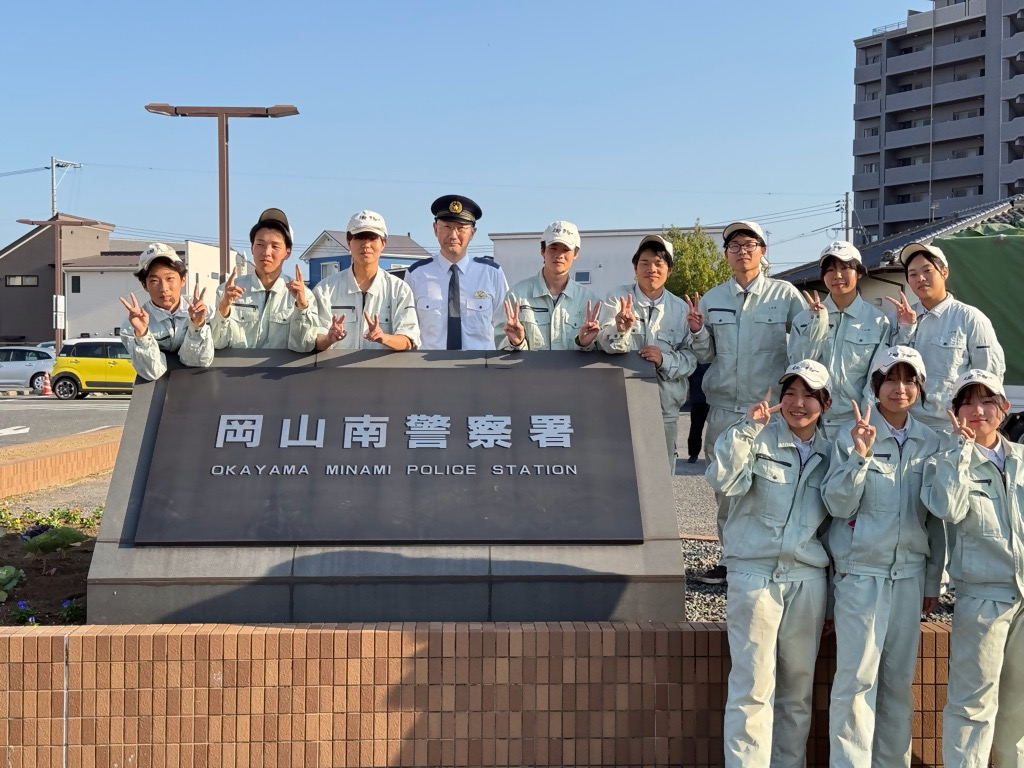 【造園デザイン科3年生生活環境類型】 岡山南警察署植栽実習 投稿公開日:2025 年 11 月 26 日 投稿カテゴリー:トピック / 造園デザイン科 / 授業・実習風景 令和7年11月7日(金)。 造園デザイン科3年生活環境類型10名で岡山南警察署の植栽実習を行いました。自分たちで播種して育てたビオラなどの苗260ポットを、各班で考えたデザイン画を元に花壇に植栽しました。デザインも考え、良い植栽になりました。綺麗に植えた後、署長さんと一緒に記念撮影をしました。警察署を身近に感じることができた時間となりました。 岡山南警察署の花壇は国道30号線沿いにあるので、通りがかった際は、ぜひご覧ください。