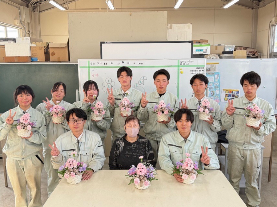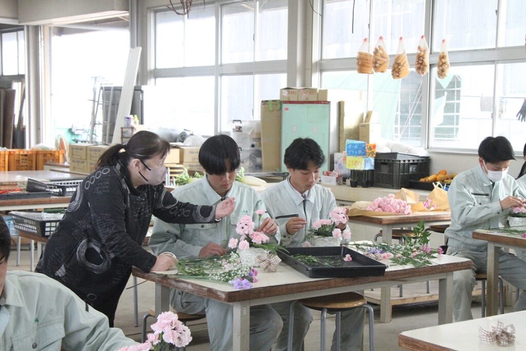 【造園デザイン科3年生生活環境類型】フラワーアレンジメント講習会 投稿公開日:2025 年 12 月 3 日 投稿カテゴリー:トピック / 造園デザイン科 令和7年11月28日(金)。 造園デザイン科3年生活環境類型で「フラワーアレンジメント講習会」を行いました。フラワーデザイナーの菊池敬子先生をお招きし、かわいいプードルのフラワーアレンジメントを教えていただきました。 かわいいプードルのフラワーアレンジメントを作るのは初めてで、どのような作品になるか想像ができていませんでしたが、菊池先生からの理解しやすい説明と的確なアドバイスによって、みんな素晴らしい作品を完成させることができました。作業開始直後はイメージが浮かんでくると作品制作に集中した顔つきでしたが、作品完成間近になると笑顔で取り組むことができました。限られた時間でしたが、プロの先生から新しい知識や技術を直接学ぶことができ、とても貴重な時間となりました。