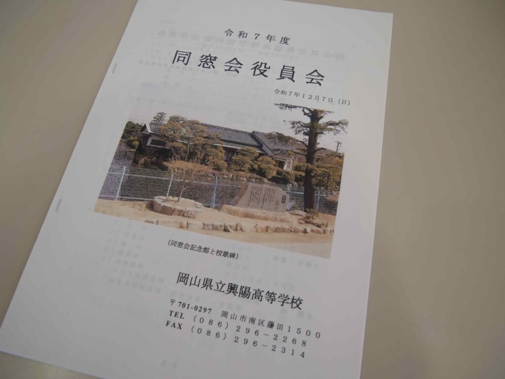 同窓会役員会開催 投稿公開日:2025 年 12 月 22 日 投稿カテゴリー:同窓会 令和7年12月7日(日)、興陽高校の興陽館で令和7年度同窓会役員会を開催し、令和8年4月19日(日)に開催予定の同窓会総会・懇親会について協議しました。 役員会も無事に終了し、総会・懇親会開催に向けて準備が始まりました。
