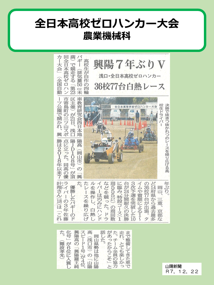 山陽新聞に「全日本高校ゼロハンカー大会」についての記事が掲載されました。