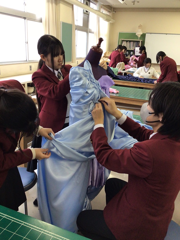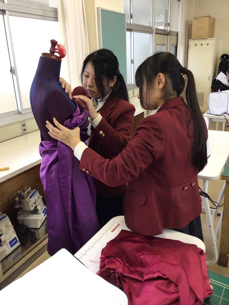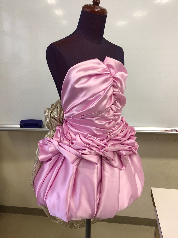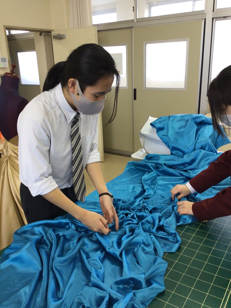 【被服デザイン科】ピンワークに挑戦! 投稿公開日:2026 年 2 月 17 日 投稿カテゴリー:トピック / 被服デザイン科 / 授業・実習風景 / 校内風景 被服デザイン科2年生が造形デザインの授業で「ピンワーク」に挑戦しました。ピンワークとは、布を切ったり縫ったりせずに、ピンだけでドレスに見立てていく技法です。色とりどりのオリジナルドレスをギャザリング、タッキングなどの技法で仕上げていきました。完成が楽しみです。