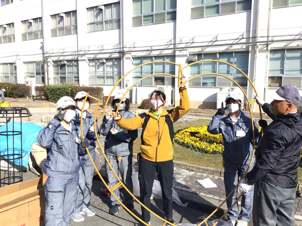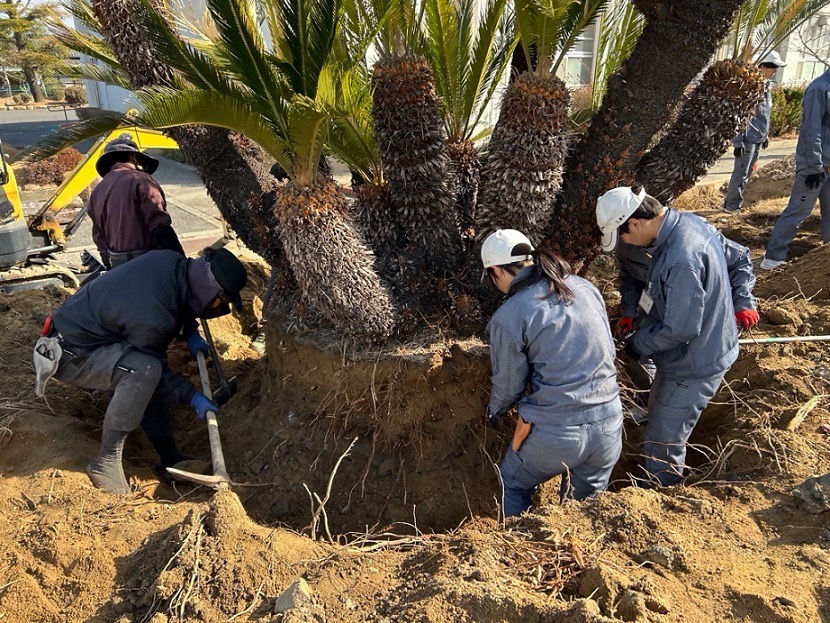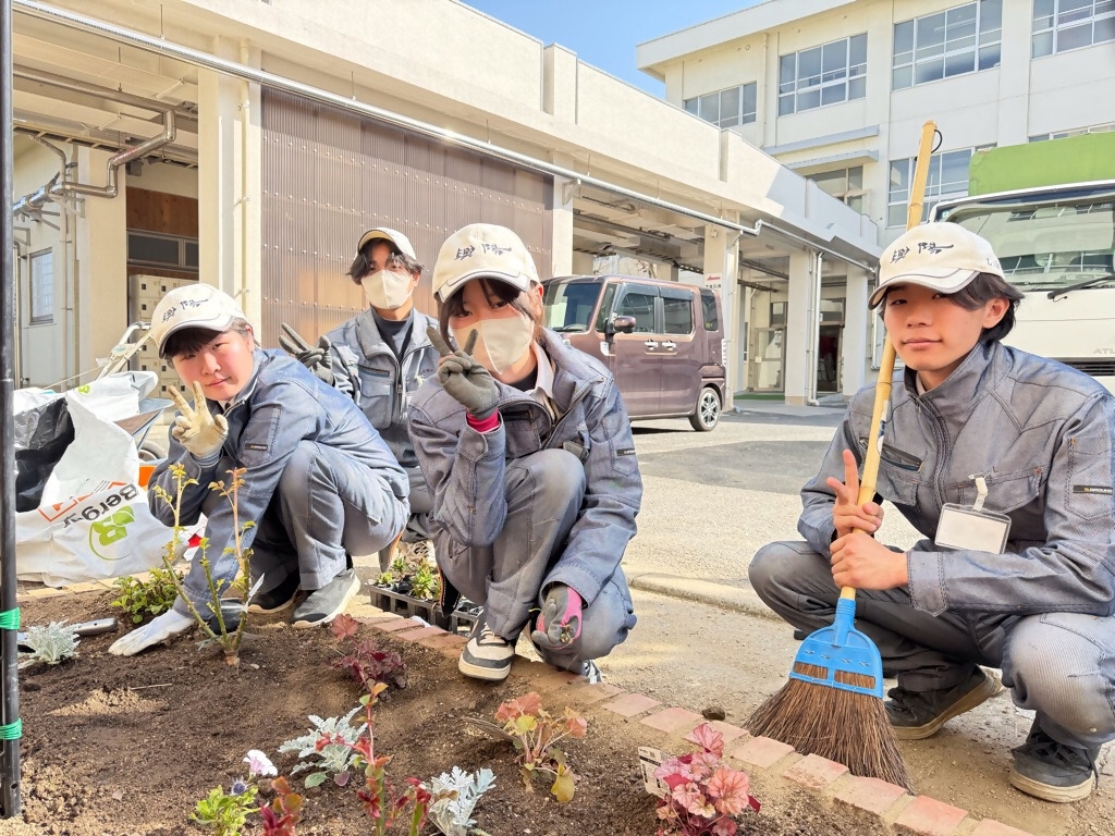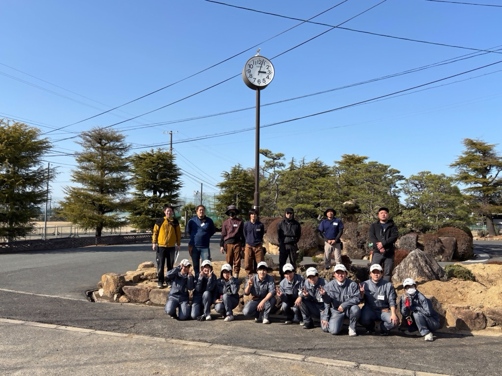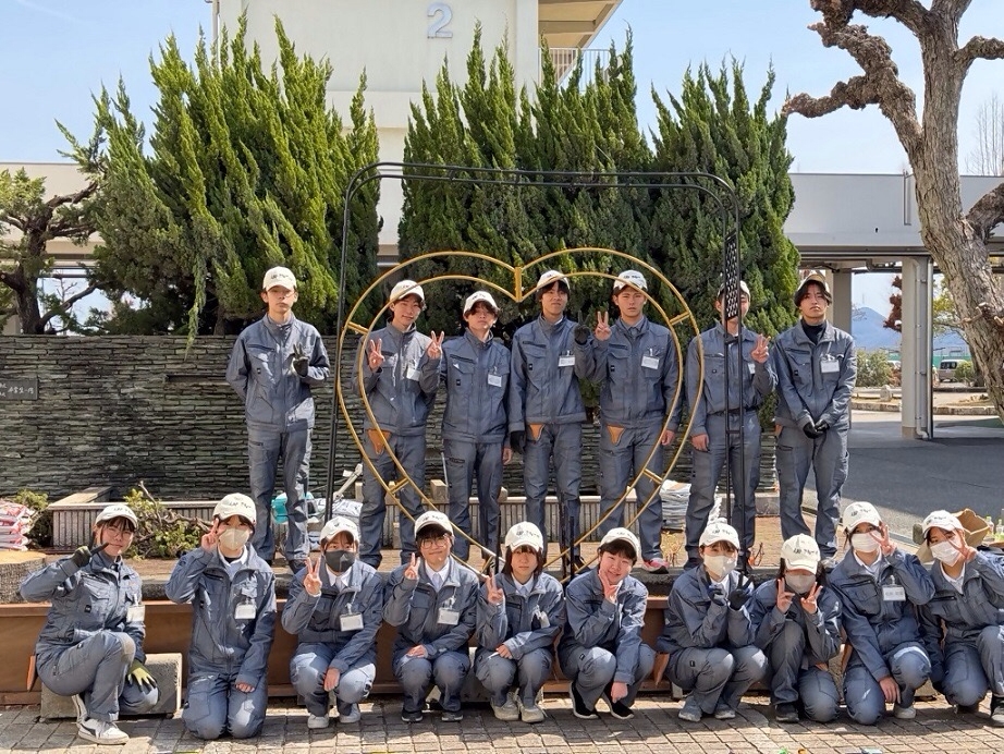 【造園デザイン科2年生】バラプロジェクトと深山公園実習 投稿公開日:2026 年 3 月 16 日 投稿カテゴリー:トピック / 造園デザイン科 / 授業・実習風景 / 校内風景 令和8年3月5日(金)。 造園デザイン科2年生が、玉野市公園緑化協会と造園組合の職人の方のご協力のもと、例年行っている深山公園実習を初めて校内で実施しました。 2年生が庭プロジェクト班とバラプロジェクト班に分かれ、職人の方にご指導いただきながら実習することができました。作業をする中で様々な知識を学ぶ事が出来き、実習を終えることができました。 校内に素晴らしい庭と美しいバラ園が作られる予定です。完成までまだ時間がかかりますが、先輩から受け継いだ伝統を職人の方と一緒に形にする大きなプロジェクトが始まっています。完成が楽しみです。
