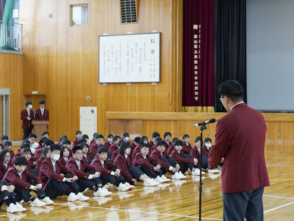 【 対面式 】 投稿公開日:2026 年 4 月 23 日 投稿カテゴリー:トピック / 農業科 / 農業機械科 / 造園デザイン科 / 家政科 / 被服デザイン科 / ライフデザイン科 / 生徒会 / 校内風景 4月10日(金)に対面式が行われました。2.3年生と1年生が向かい合って、先輩たちが1年生を歓迎してくれました。1年生が1日でも早く興陽高校に慣れ、興陽高校生として活躍してくれることを期待しましょう!