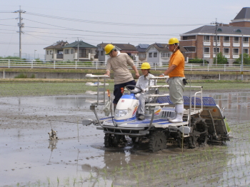 久世高校の食品化学科2年生が来校し、学校間交流として田植え実習を行いました。