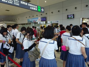 修学旅行(台湾コース)2 投稿公開日:2015 年 9 月 8 日 投稿カテゴリー:トピック 広島空港に到着。初めての海外旅行という生徒がたくさんでしたが、生徒24名全員出国手続きを無事済ませました。いよいよ台湾に向けて定刻にテイクオフします。