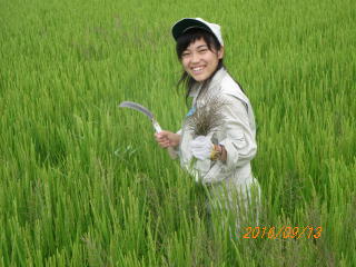 9月農業科農場アラカルト 投稿公開日:2016 年 10 月 7 日 投稿カテゴリー:農業科 人気の卵も売り切れ間近です。いつもお買い求め、ありがとうございます。 特別栽培米の朝日も穂がそろいました。7日おきに生育調査に取り組んでいます。 特別栽培の水田でもウスバキトンボがたくさん飛んでいます。その数にびっくりです。 普通栽培田の朝日の生育調査を終えて、ライスセンタにみんなで帰ろう。 草刈り機で畦畔の除草をしました。上手く雑草を刈ることができました。 10月からの収穫に向けてコンバインの前進、後進、方向転換をライスセンタ前のグランドで練習しました。 お飾り用に早く収穫し、乾燥させたイネの根元の茎を千歯こきできれいにそろえました。 イネの中に発生しているアゼガヤをのこ鎌で取り除きました。 3年生の課題研究で赤米のあかおにもちの栽培に取り組んでいます。穂にきれいな赤色ののげが発生しました。生育調査中です。