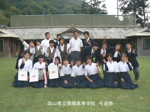 成年男女とあわせて、岡山県チーム、弓道競技で