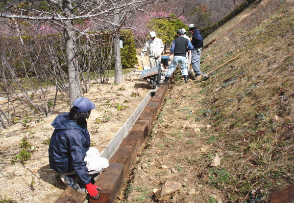 造園デザイン科生徒による校外実習を深山公園にて行いました。実習は「四つ目垣制作」「枕木花壇制作」「リンゴ花壇制作」の3グループに分かれて、玉野市造園組合の方々に専門の技術を指導していただきました。雪の降る寒い日でしたが、普段の実習では学ぶことのできない現場の厳しさなどを知ることができ、貴重な経験となったようです。