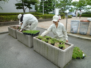 病院のボランティアの方々と一緒に一生懸命植栽しました。