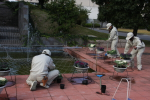 造園デザイン科1年生40名が岡山県下水道公社の前庭にある花壇へ草花苗を植栽しました。
