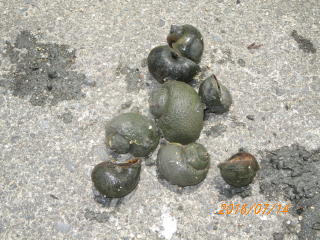 どぶ貝やジャンボタニシを発見しました。 |