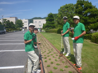 梅雨の時期の植栽だったので天気の心配もありましたが、天候にも恵まれて無事に花壇に花を植え付けることができました。