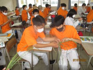 田植づなの赤色の印の下に苗が倒れないように植えました。 |