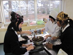 家庭クラブ 教養部主催 ケーキ講習会 Posted on 2012 年 2 月 7 日 by koyohigh100 H24年 2月2日(木) 家庭クラブ 教養部 主催の「ショコラケーキ講習会」が行われました。 講師は、家政科3年 食物科学類型の生徒6名です。 校内で希望者を募り、約30名の生徒が参加しました。 3年生がお手本を見せ、その後各班に分かれ実践しました。 バレンタインデーが近いこともあり、作る姿は真剣そのもの・・・ 焼き上がりの様子・・・ 気持ちのこもったケーキが出来上がりました。 3年生のみなさん、ありがとうございました!