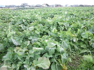 西の畑に2年生作物類型の生徒で2列カブを作りました。